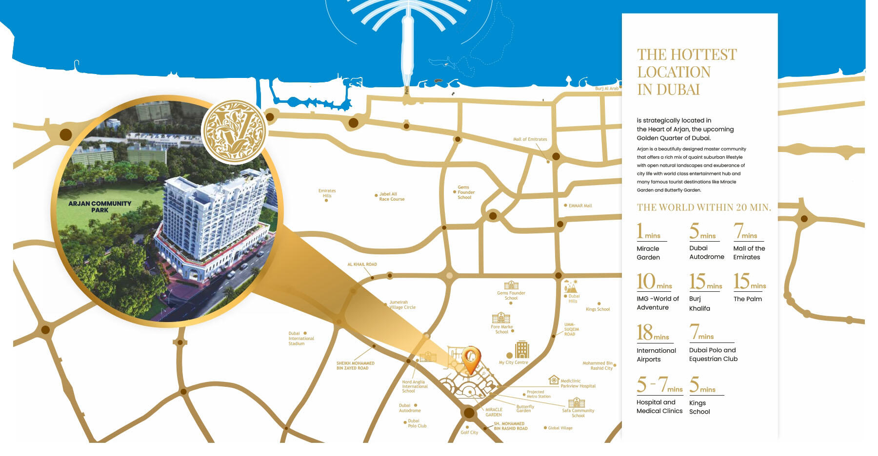 Location:Situated in the heart of Dubailand, Arjan offers a tranquil environment with easy access to Sheikh Mohammed Bin Zayed Road and Umm Suqeim Road.